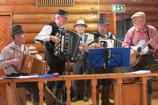 Pirkka-Hämeen jätkäperinne ry soittamassa. Mukulatapahtuma 2023. Kuva Aila Salmi.
