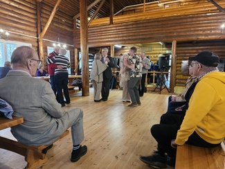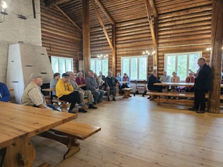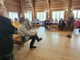 Tampereen Vehmainen-seuran puheenjohtaja Kirsi Kuusela kertomassa nykyvehmaisten kuulumisia. Kuva Kirsi Jaakkola.